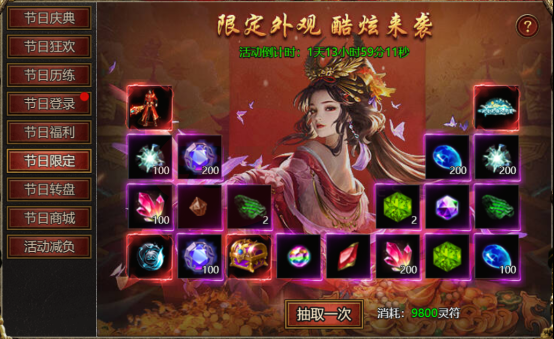 【活动内容】:使用灵符购买限定碎片并进行抽取奖励,抽满奖励全部获得。