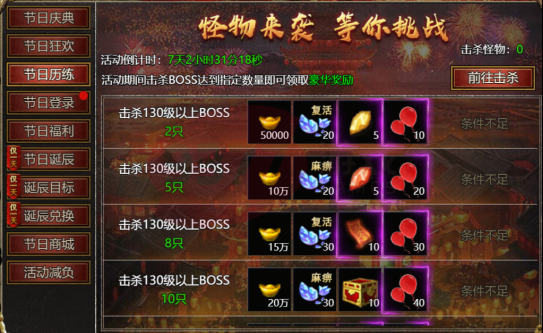 【活动内容】:活动期间,击杀怪物达到指定数量,领取奖励!