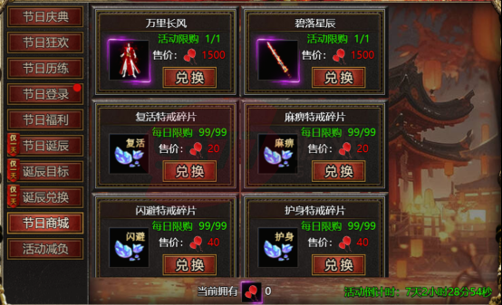 【活动内容】:当天可使用诞辰碎片兑换活动时装、称号及特戒碎片!