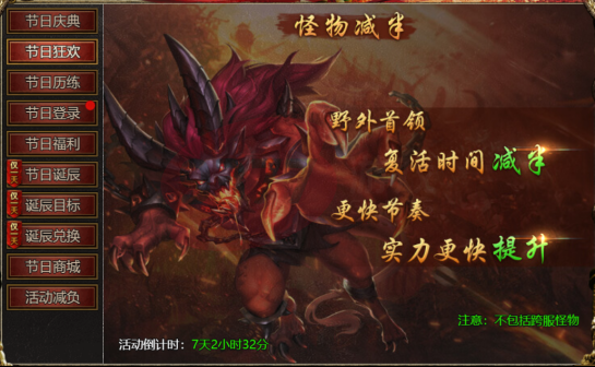 【活动内容】:活动期间,野外BOSS复活时间减半