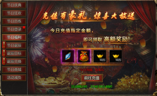 【活动内容】:活动期间:每日充值指定金额,即可领取高额奖励!