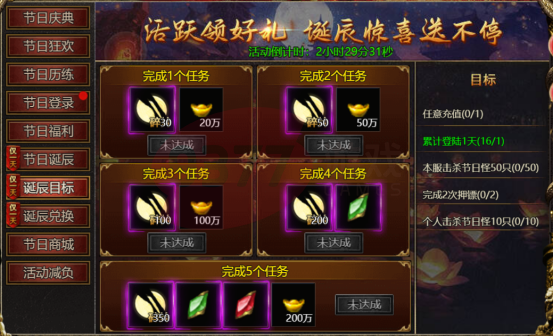 【活动内容】:当天完成目标任务,即可领取诞辰目标奖励!